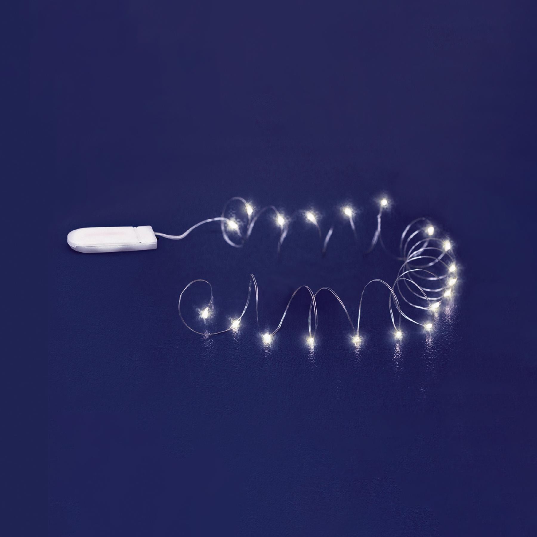 Ghirlanda microLED alb rece, 20 puncte luminoase, suport plat baterii, timer 6h/18h, lumina fixa