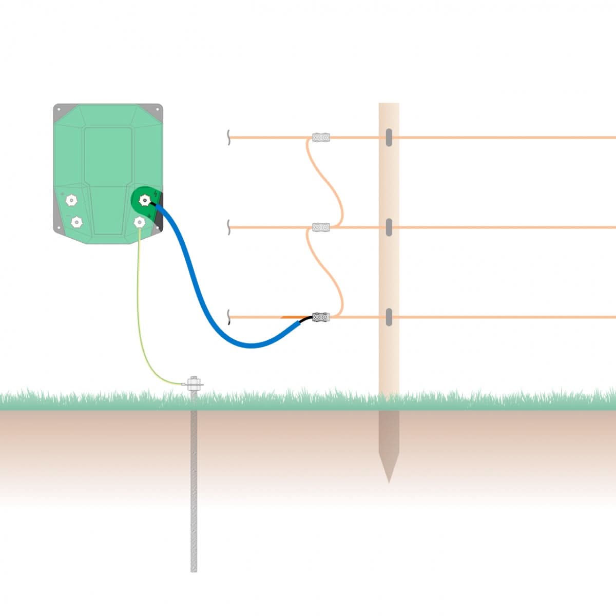 Cablul rezistent permite montarea atat la suprafata, cat si sub pamant, fiind ideal pentru zonele cu acces frecvent. La un capat, cablul este prevazut cu papuc inelar pentru montare sigura pe surub de M6, compatibil cu aparatele de gard electric DL 3200, DL 4500 si DL 7200.