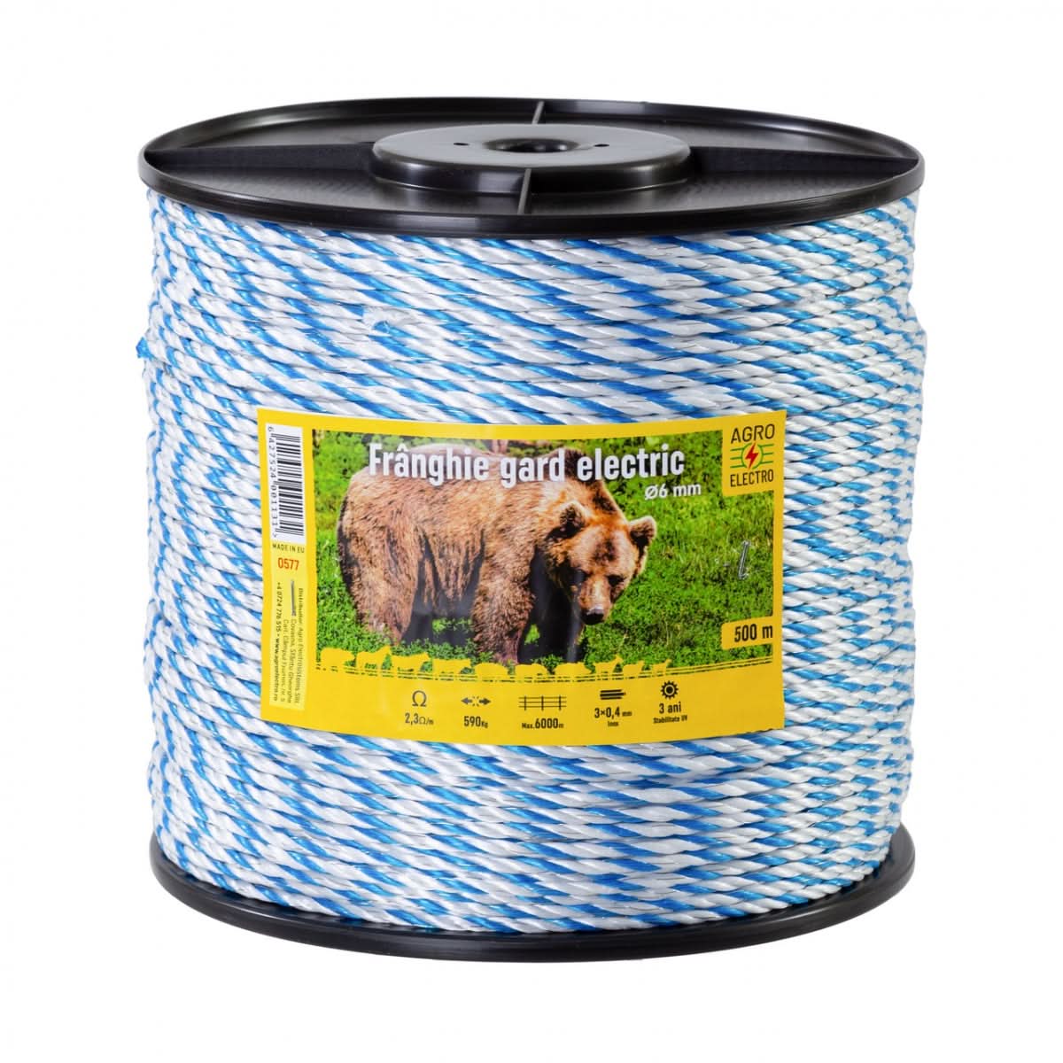 Frânghie gard electric 500 m, rezistenta la rupere 590 kg, rezistenta electrica 2,3 Ω/m