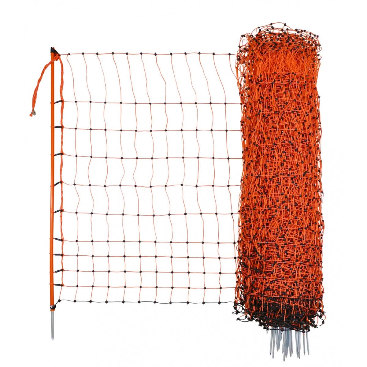 Plasa gard electric special conceputa pentru pasari si animale de talie mica, precum gaini, gaste, curci, oi, caini si porci. Cu o lungime de 50 metri si inaltime de 106 cm, este ideala pentru garduri electrice temporare datorita stalpilor din plastic inclusi, usor de montat si demontat.