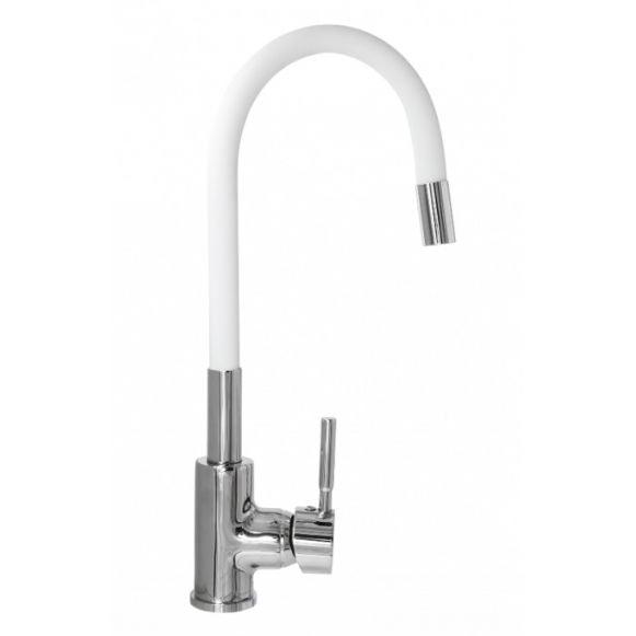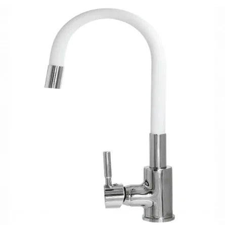 Bateria de bucatarie este formata dintru-un corp cromat iar pipa este din cauciuc de culoare alb foarte placut la atingere lucru care confera un aspect modern completand estetic si functional spatiul in care gatesti si servesti masa.