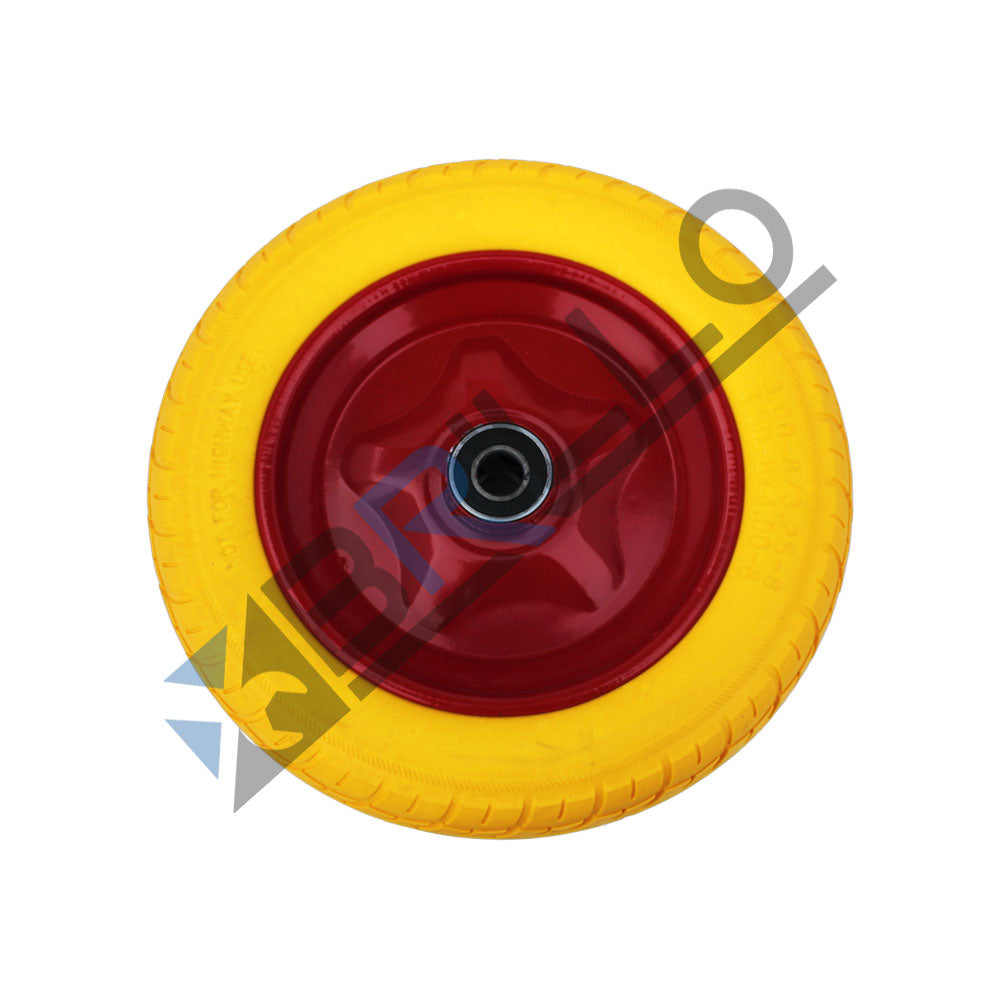 Roata pentru roaba 350-8 este echipata cu rulment si ax de 20 mm, fiind ideala pentru transportul sigur si stabil al incarcaturilor grele. Anvelopa din poliuretan rezistent reduce riscul de pana si asigura durabilitate pe termen lung, iar janta metalica solida ofera sustinere excelenta. Este potrivita pentru roabe utilizate in gradina, santier sau gospodarie, suportand greutati de pana la 120 kg.