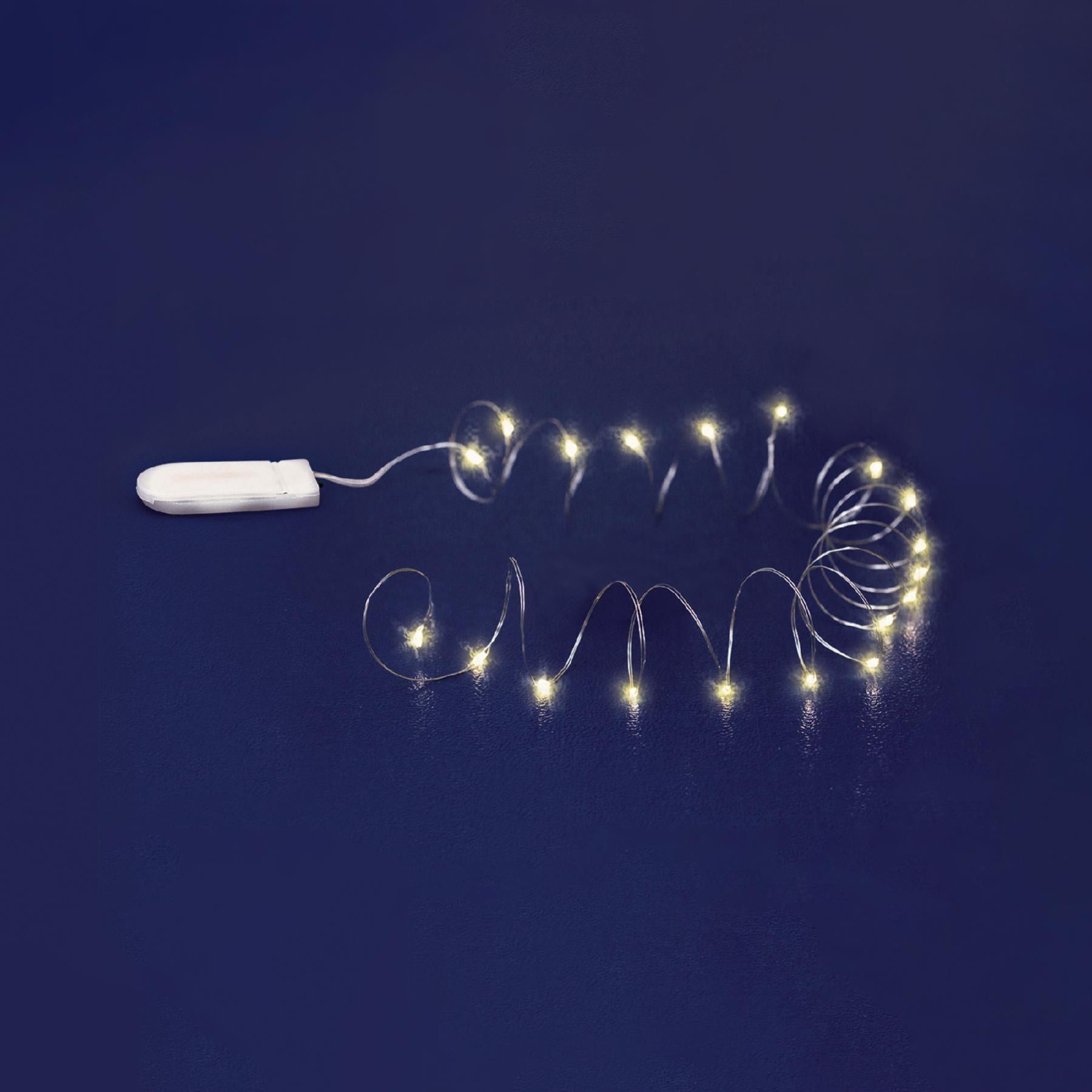 Ghirlanda microLED alb cald, 20 puncte luminoase, suport plat baterii, timer 6h/18h, lumină fixa