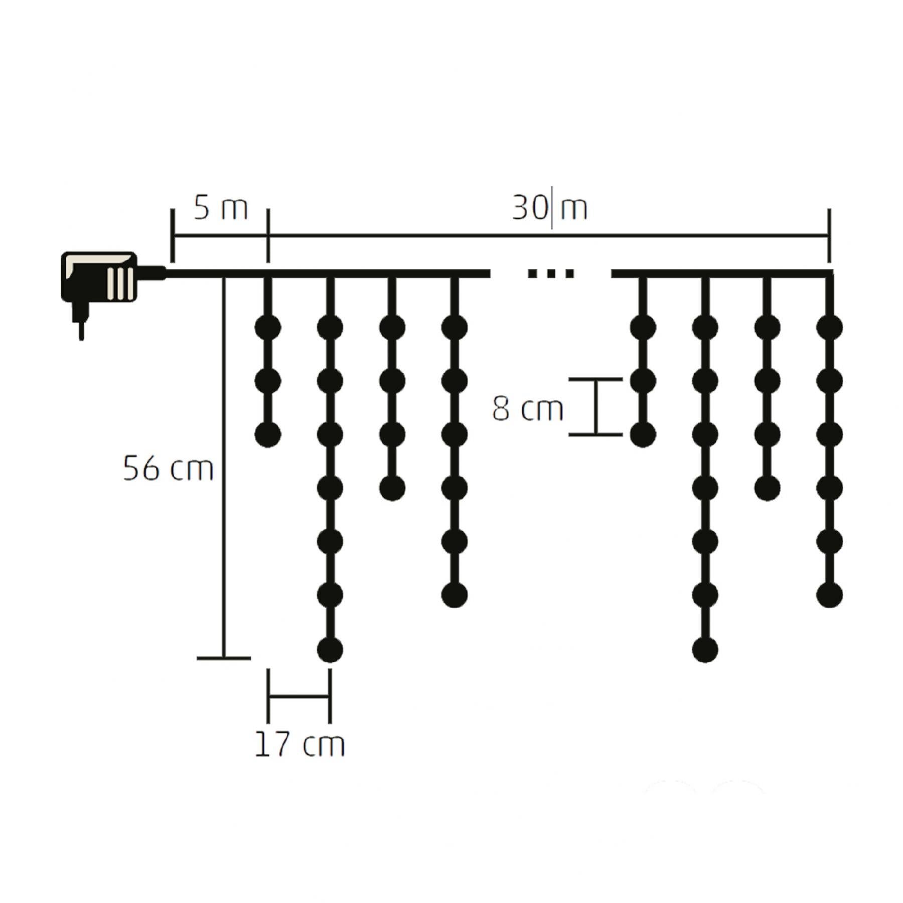Perdea lumini LED 900 alb cald, 30 m, 8 programe cu memorie, timer 6h/18h, interior exterior, adaptor IP44