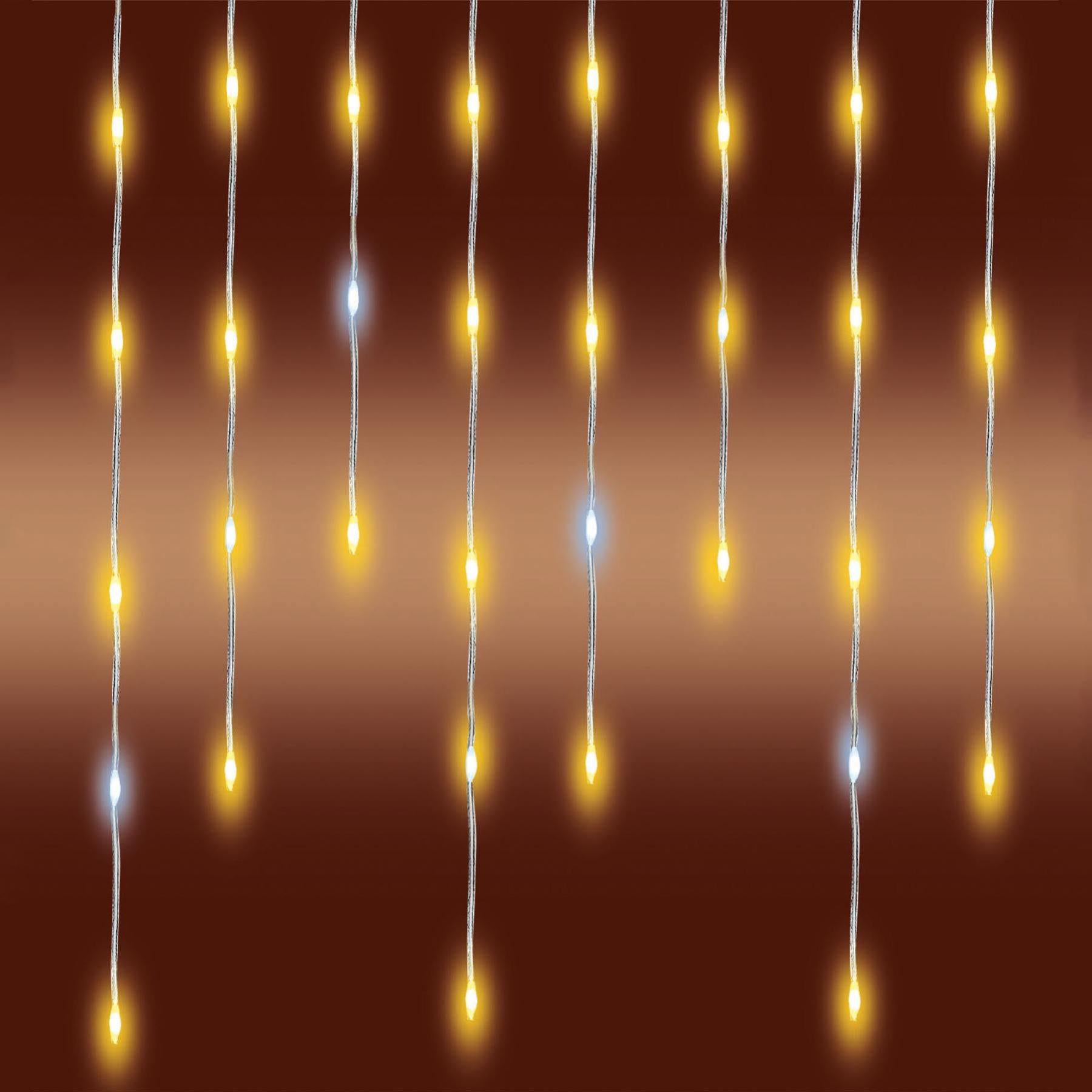 Perdea luminoasa LED tip sloi de gheata, 600 DOT LED alb cald cu alb rece intermitent, exterior/interior, cablu transparent, adaptor IP44