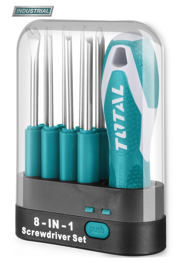 Set Surubelnite Interchangeabile TOTAL Industrial 9 piese CR-V – Maner Ergonomic, Otel Crom-Vanadiu