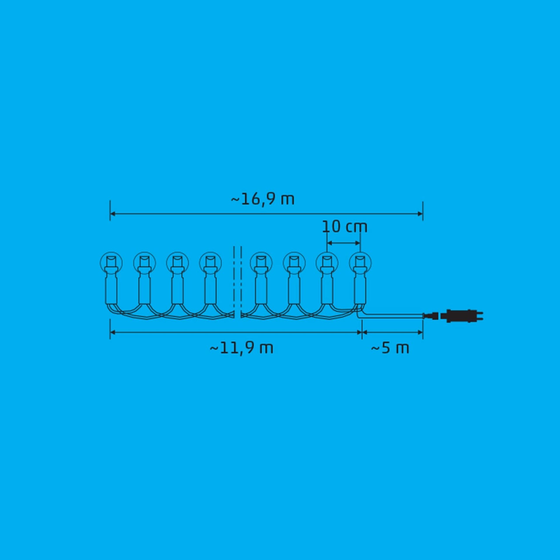 •Lungime: 16,9 m (lungime ghirlanda 11,9 m 5 m cablu alimentare)