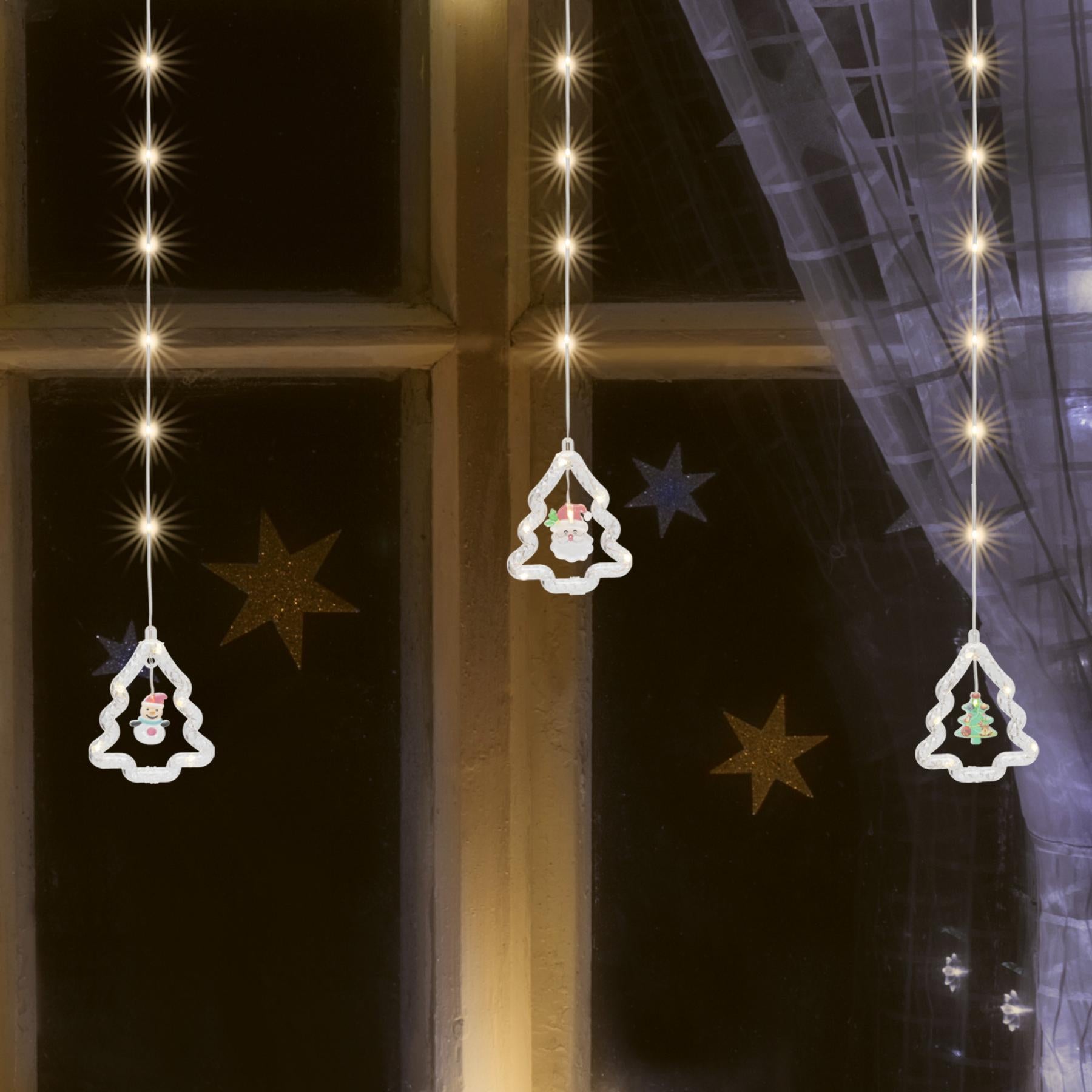 Perdea lumini brad LED interior/exterior, 110 micro LED alb cald, 10 ghirlande, figurine Craciun, cablu transparent, adaptor IP44