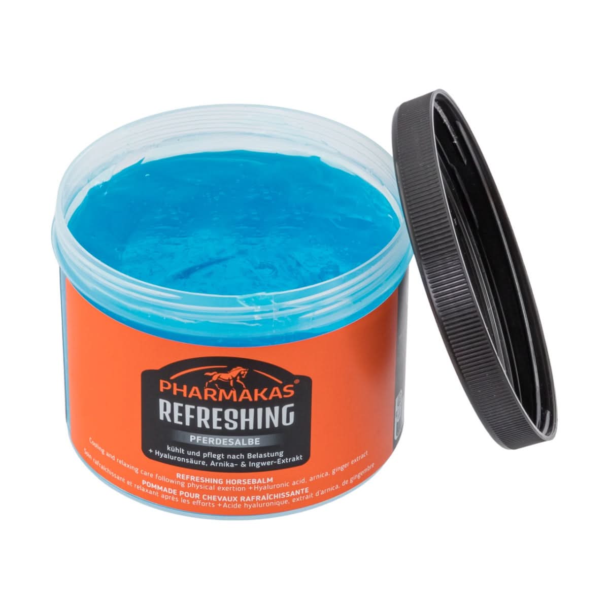 Balsamul de masaj Pharmakas Refreshing (Refreshing pferdesalbe) este destinat in special cailor. Gel racoritor si relaxant ce contribuie la stimularea circulatiei sanguine in muschi, oferind un masaj eficient pentru tendoane, muschi si articulatii.
