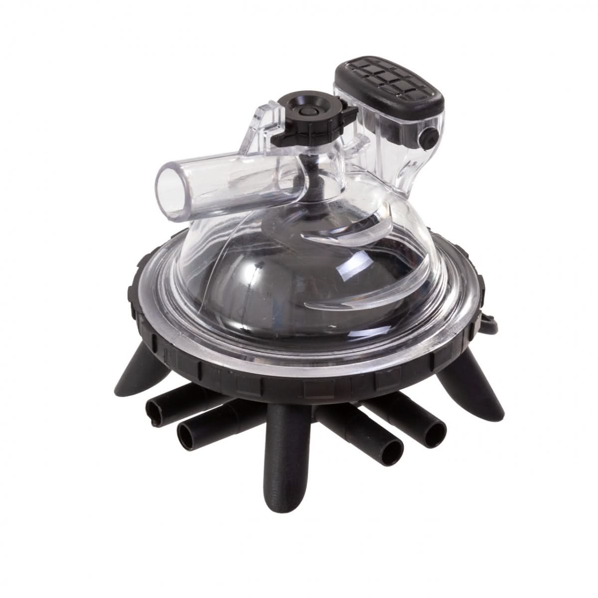 Camera de colectare a laptelui (cu capac transparent) cu 4 intrări de Ø14 mm și o ieșire de Ø20 mm.