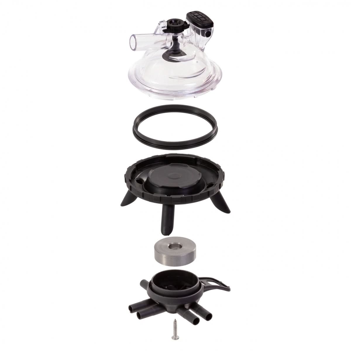 Capac transparent se conectează la corp cu o prindere de tip baionetă și este etanșat cu o garnitură de cauciuc.