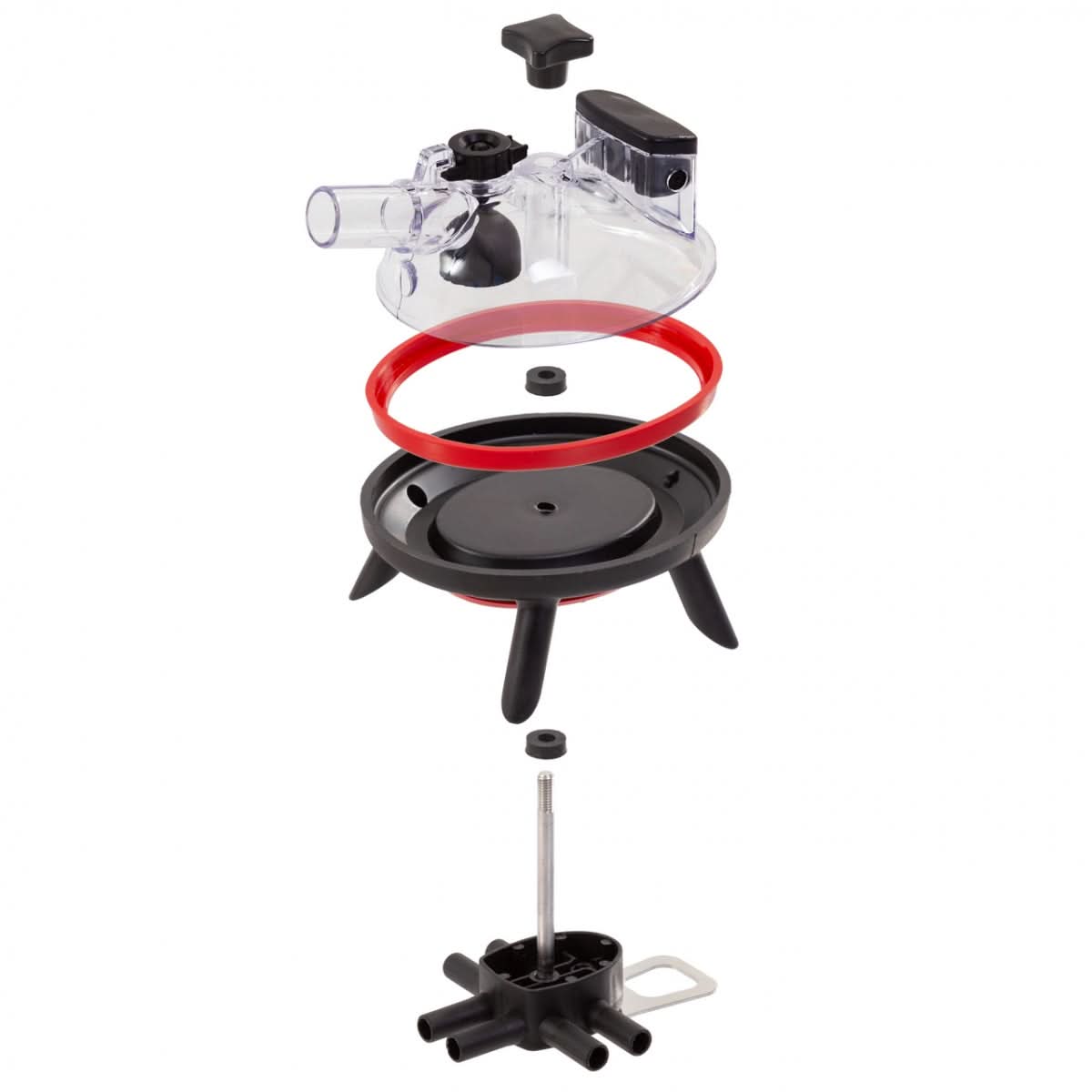 Camera de colectare a laptelui (cu capac transparent) cu 4 intrări de Ø14 mm și o ieșire de Ø20 mm.