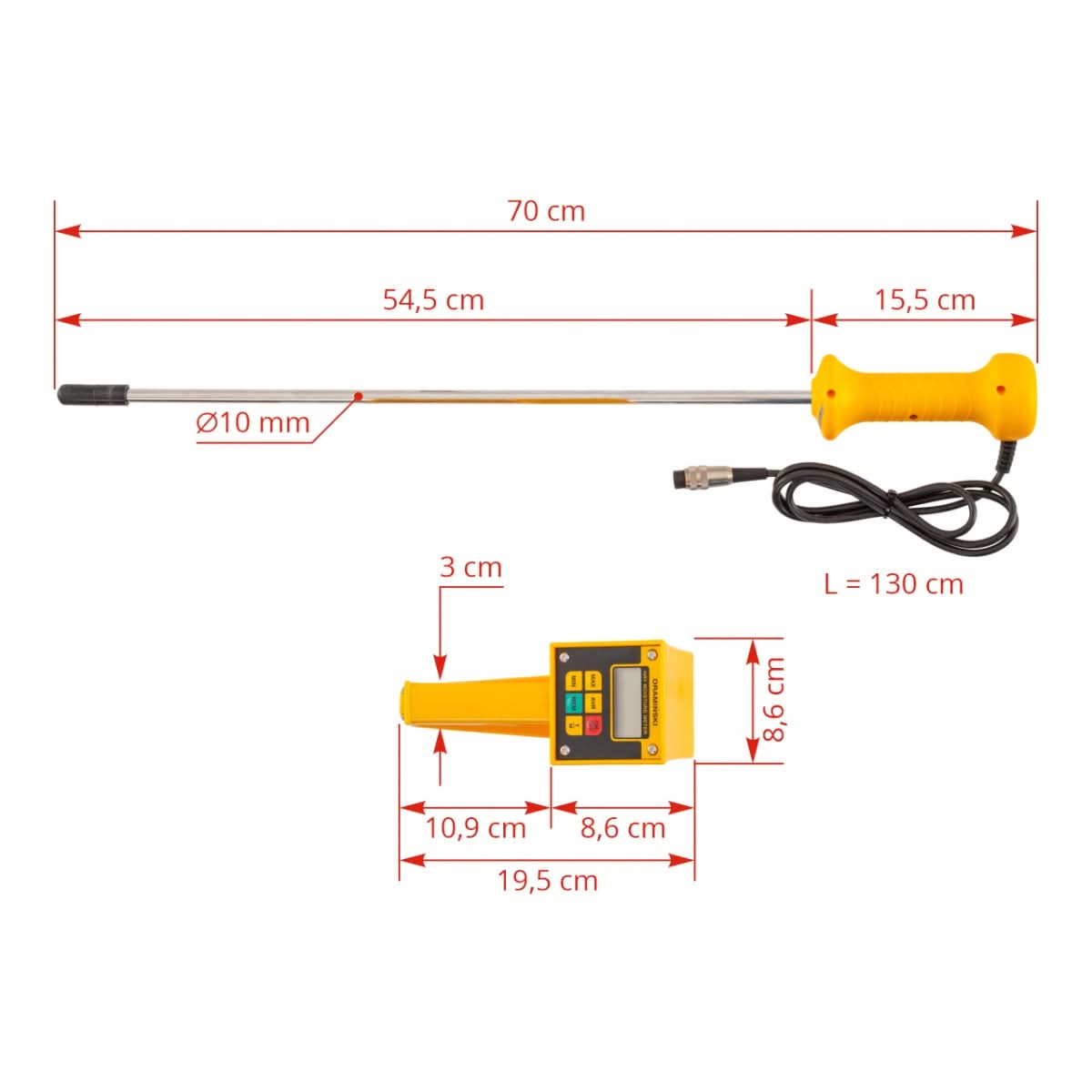 Dispozitiv digital pentru masurarea umiditatii si temperaturii in fan, paie si tutun presat
