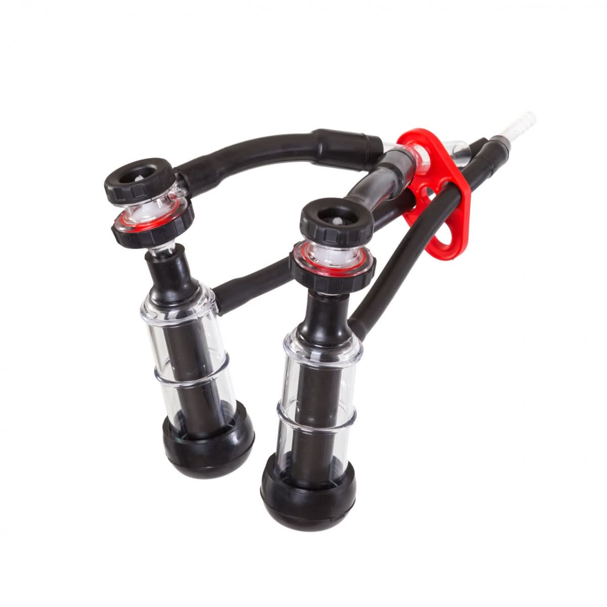Grup complet de muls pentru oi, pregatit pentru conectare rapida la aparatul de muls. Include manșoane si furtunuri din cauciuc, plus colector universal pentru o mulgere eficienta si sigura.