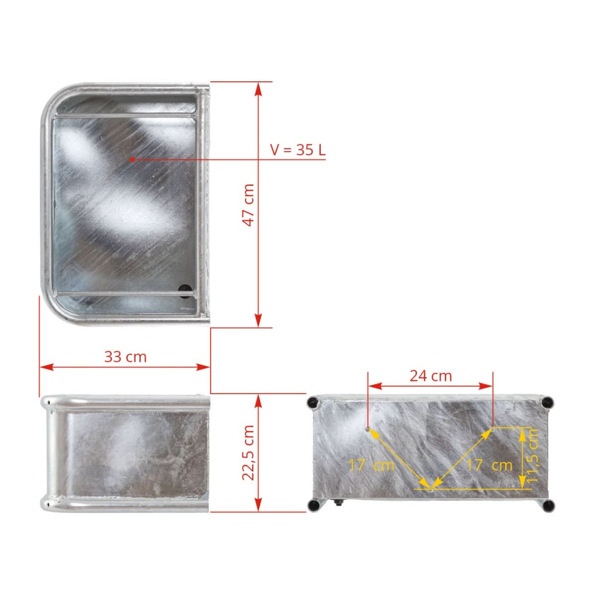 Hranitoare otel zincat 35 litri pentru bovine si cabaline montare perete