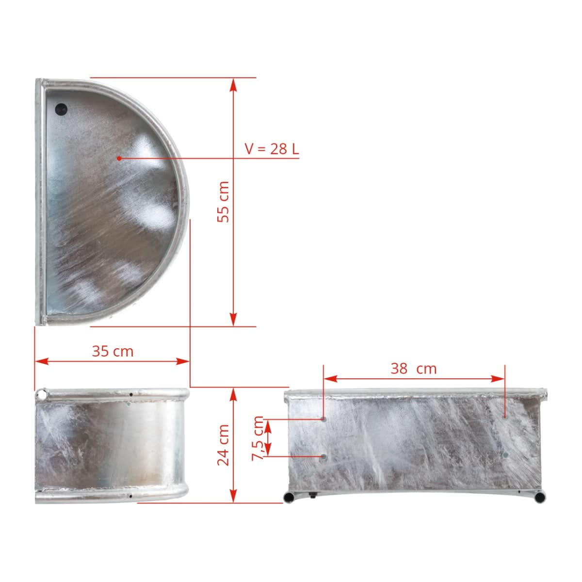 Hranitoare semirotunda otel zincat 28 litri pentru bovine si cabaline montare perete