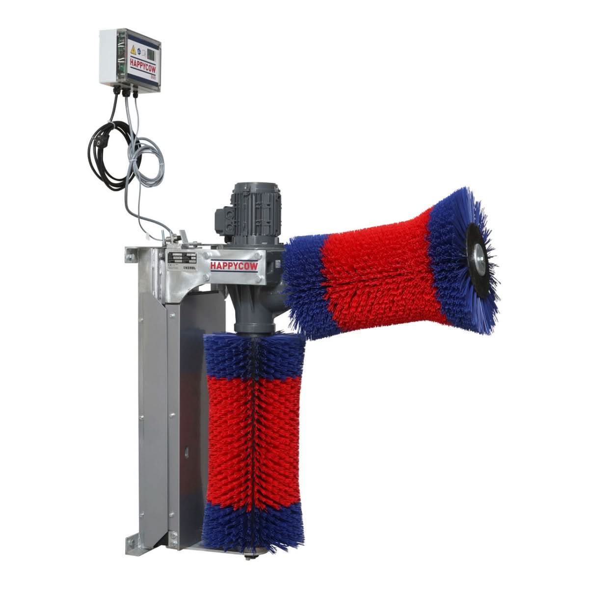 Echipament performant pentru curatarea vacilor, dotat cu doua perii: una orizontala si una verticala