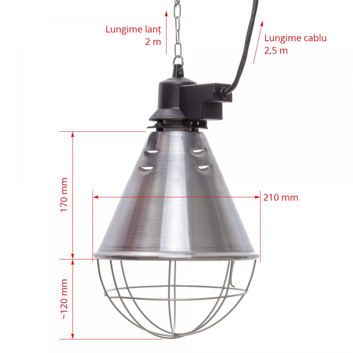 Suport bec infrarosu pentru incălzirea animalelor, aluminiu, lant reglabil 2m, cablu 2,5m