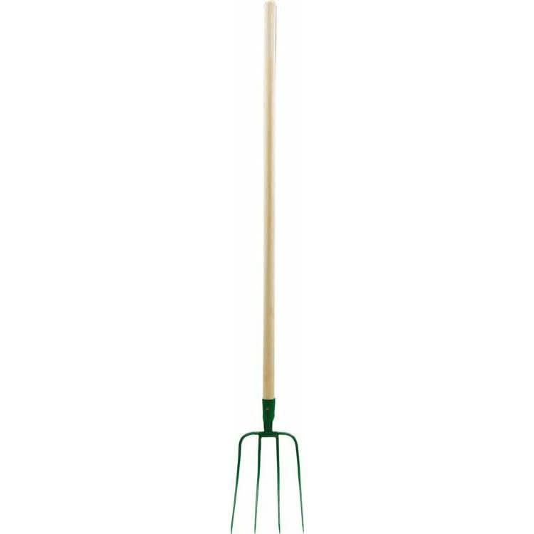 Furca cu 3 dinți, montata pe coada de lemn. Acestea sunt utilizate pentru lucrările de câmp și de grădinărit, de exemplu, pentru transportul de paie, fân și deșeuri de plante