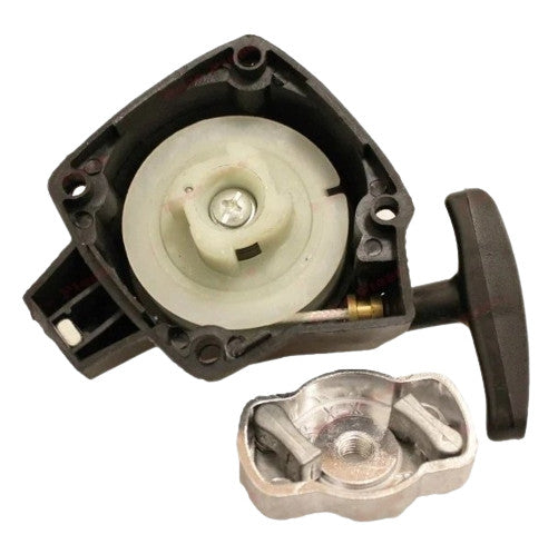 Demaror pentru motocoasa, pulverizator si atomizor ce se intalneste pe motoarele tip 34F. Acest demaror se livreaza cu complet (cu tot cu oala ce cupleaza ambielajul motorului) Date tehnice: Distanta dintre gauri:50mm; Pentru dimensiuni va rugam sa consultati imaginea produsului.
