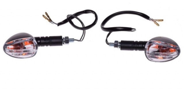 Semnale negre ovale. Specificatii: tip bec: BA15S (12V 10W) carcasa: plastic difuzor: plastic aprobare: E8 filet: M8 x 1,25 lungime cablu: 280 mm Set de 2 buc.