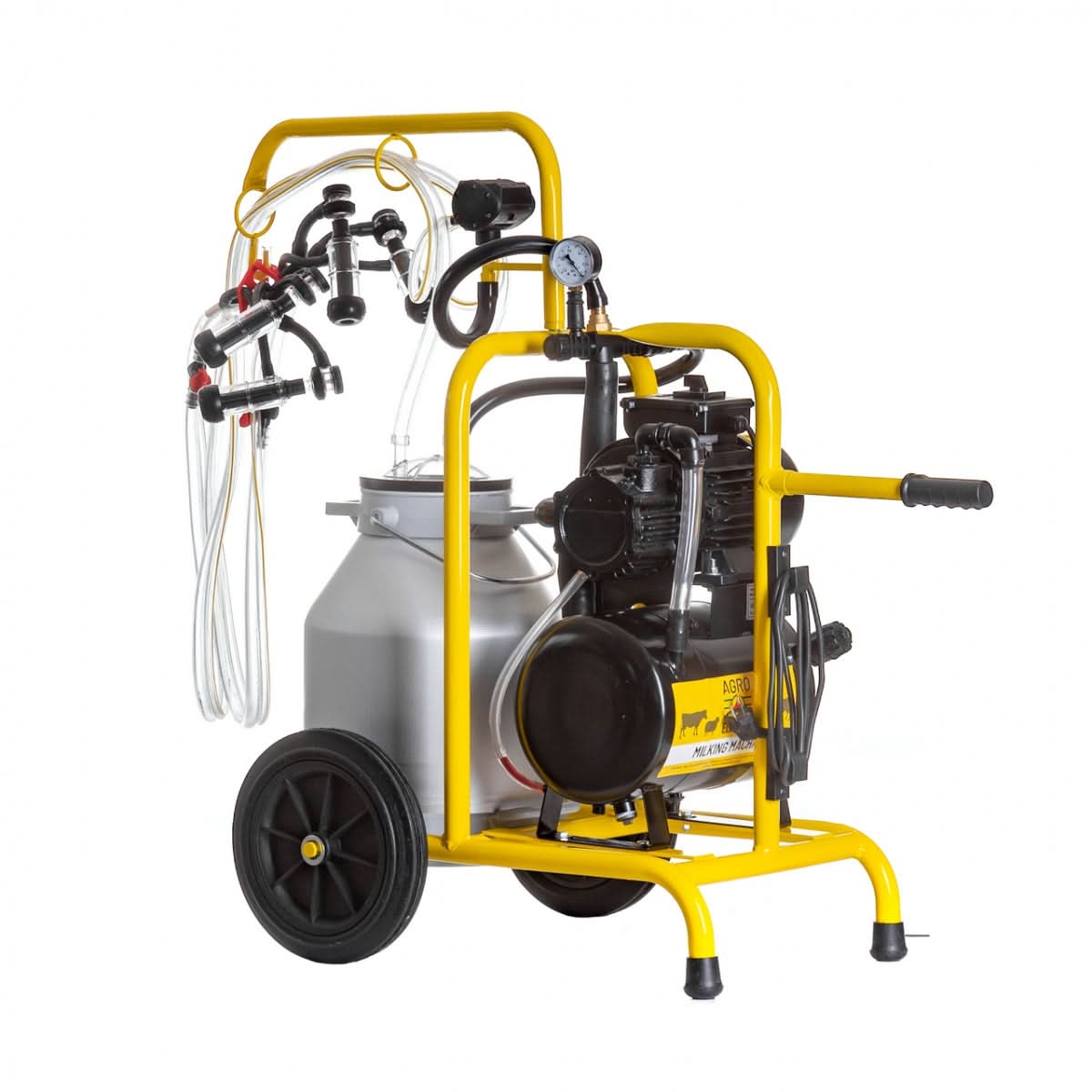 Aparat de muls pentru oi, cu 2 posturi si bidon din aluminiu de 30 litri, echipat cu pulsator, pompa de vid cu ulei si rezervor de vid. Este ideal pentru mulgerea eficienta a animalelor atat in grajd cat si pe camp. Aparatul este compact, usor de transportat si depozitat.