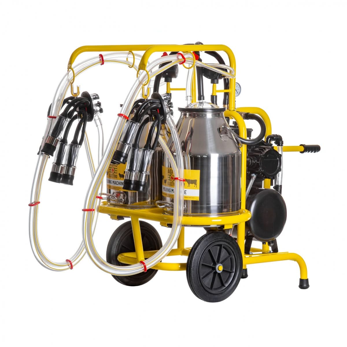 Aparat de muls vaci, cu 2 posturi și 2 bidoane inox de 30 litri