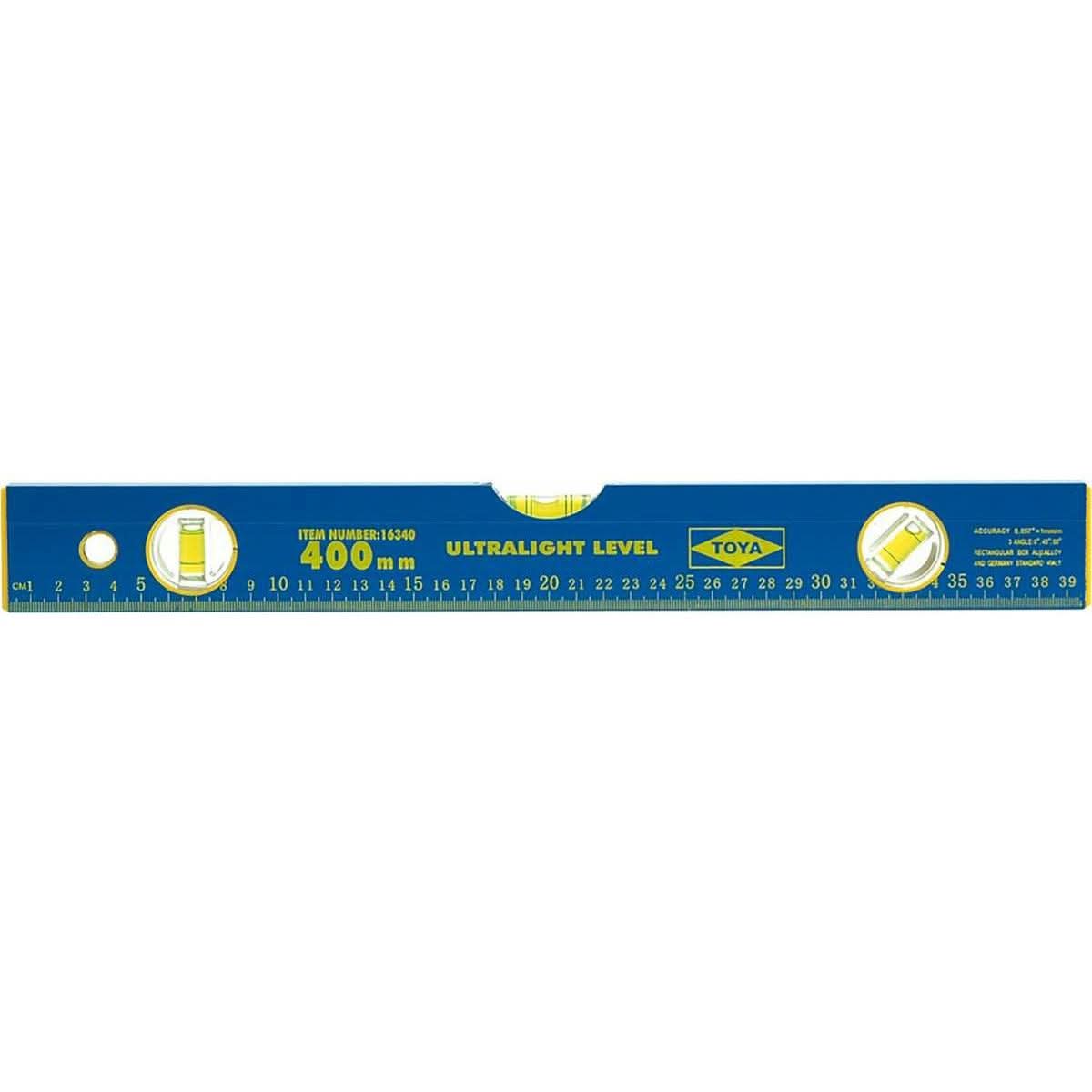 Nivela este realizata dintr-un profil din aluminiu. Are trei flacoane care indică unghiul vertical, orizontal și 45 de grade. S-a aplicat pe corp o scară milimetrică pentru marcarea ușoară a punctelor pe material.