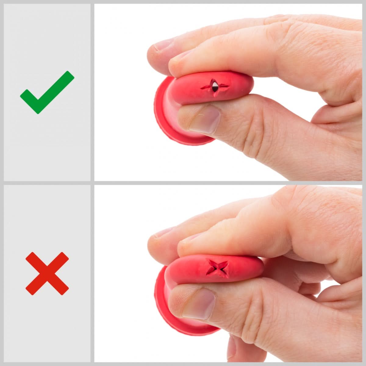 Tetina se monteaza astfel incat taietura de tip cruce de pe varful ei (C) sa formeze un „+”. Doar in aceasta pozitie se asigura fluxul corect de lapte.