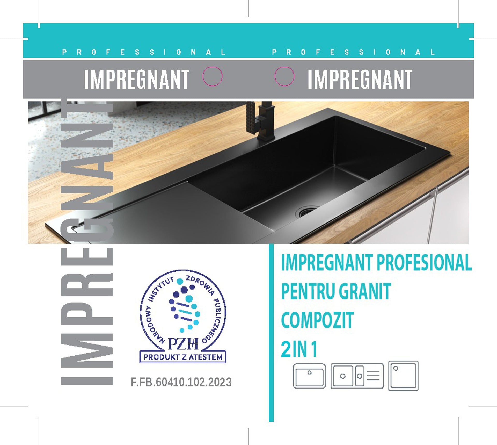 Aplicati agentul de impregnare pe toata suprafata chiuvetei sa lasati sa actioneze pentru 10-15 minute pentru a se absorbi in materialul chiuvetei.