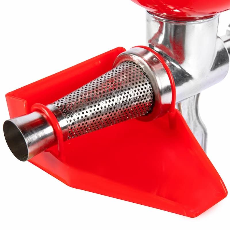 Cu storcatorul de rosii Micul Fermier nu mai este nevoie sa cumparati sucurile de legume sau fructe din comert, pline de conservanti si alte adaosuri. Aceasta masina de stors manuala este perfecta pentru suc de rosii, unt de fructe, gemuri, jeleuri chiar si piureuri din alimente pentru copii din aproape orice fructe sau leguma. Separa rapid de fructele si legumele de pieile nedorite, tulpini si seminte. Montarea, curatarea si folosirea acestui aparat sunt deosebit de simple. Adaugati legumele sau fructele in cuva speciala, rasuciti manivela de cateva ori si sucul este gata.