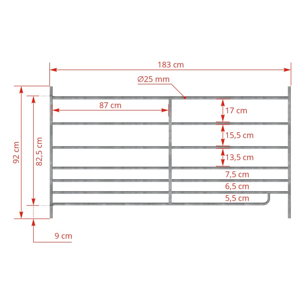 Acest panou pentru pasune este special conceput pentru organizarea eficientă a spațiilor destinate oilor, având dimensiunile de 183 cm lungime și 92 cm înălțime. Fabricat din tevi de otel galvanizat la cald, panoul beneficiază de o rezistență sporită la coroziune, fiind ideal pentru utilizarea în aer liber.