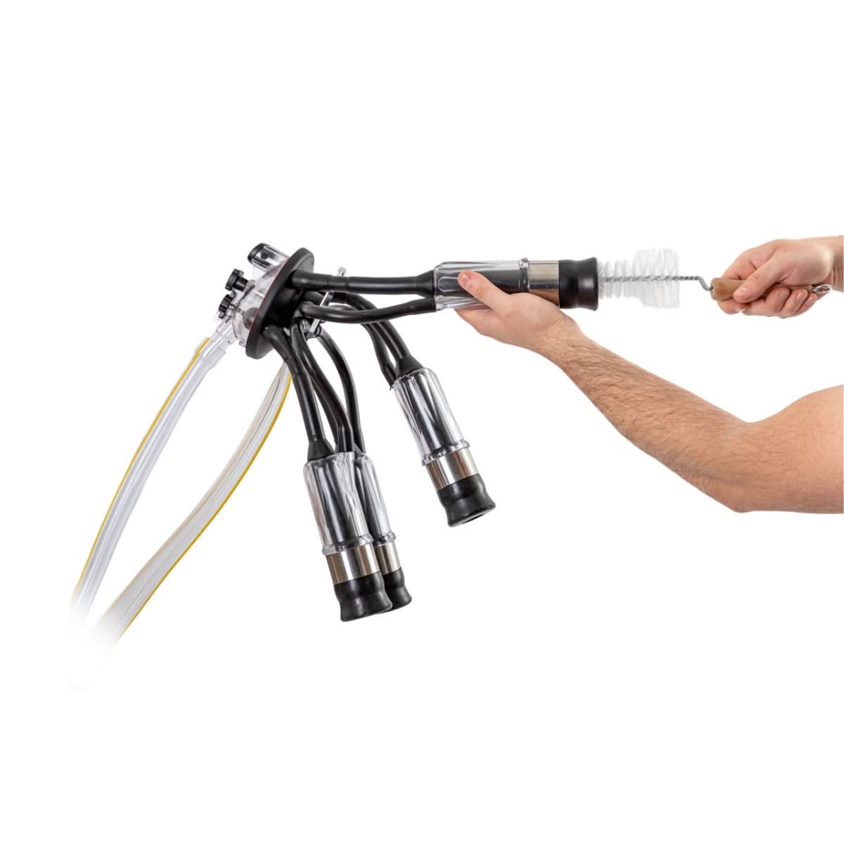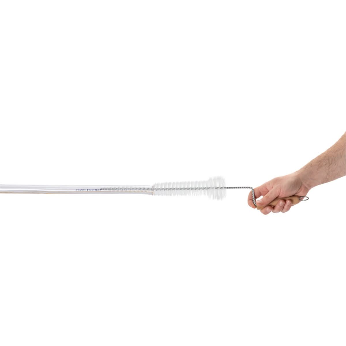 - Perie spirala pentru curatarea manșoanelor aparatelor de muls, echipata cu maner din lemn pentru o prindere sigura.
