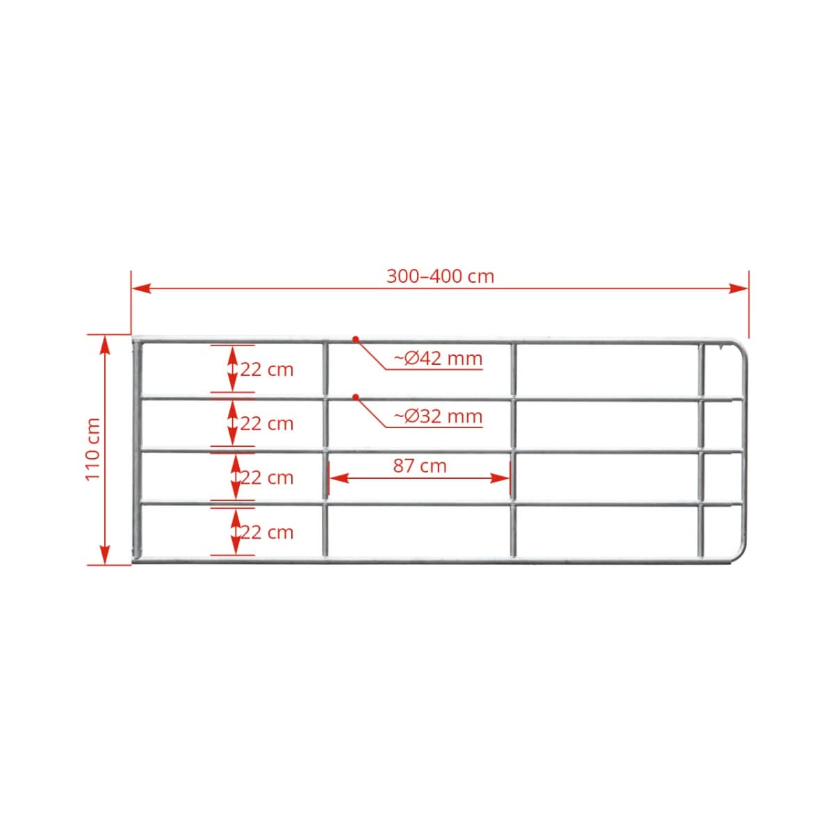 Poarta reglabila de pasune, cu deschidere ajustabila intre 300 si 400 cm si inaltime de 110 cm, este o solutie solida si flexibila pentru imprejmuirea si organizarea eficienta a zonelor destinate animalelor. Fiind reglabila, se adapteaza perfect la diverse latimi, oferind acces facil in tarcuri, padocuri sau zone de pasunat.