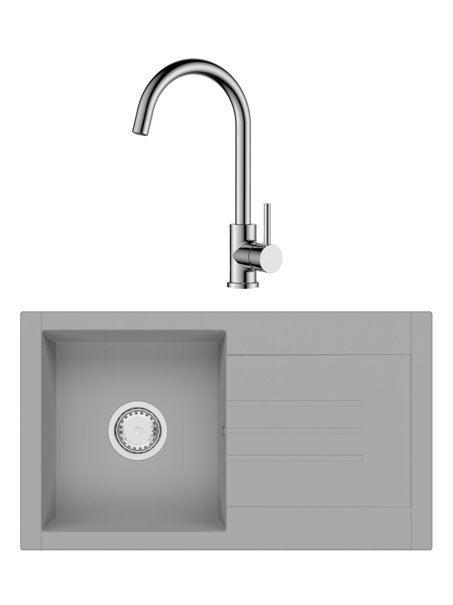 SET Chiuveta SanDonna Arona + Baterie SanDonna Solo crom - Gri