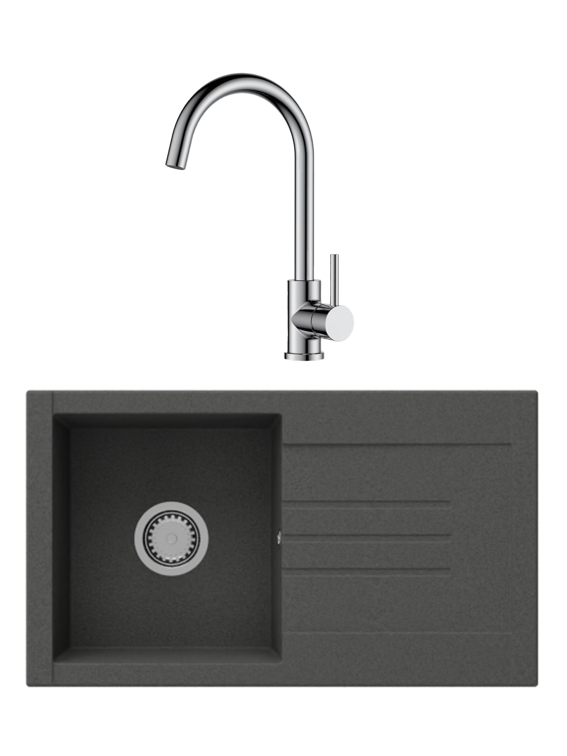 SET Chiuveta SanDonna Arona + Baterie SanDonna Solo crom - Negru