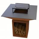 Plita groasa de 10 mm distribuie caldura uniform si permite prepararea usoara a fripturilor, legumelor sau altor alimente direct pe suprafata incinsa. Vatra functioneaza pe lemne, oferind un gust autentic si o experienta traditionala, iar corpul are integrat un spatiu generos pentru depozitarea bustenilor, astfel incat totul sa fie la indemana in timpul gatitului.