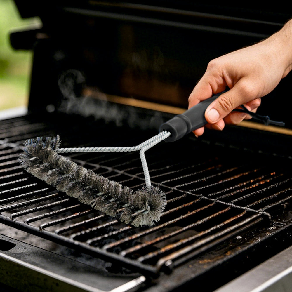 Pastreaza gratarul curat si gata de utilizare cu aceasta perie pentru curatare gratar cu peri metalici din otel inoxidabil si maner ergonomic din plastic dur. Conceputa pentru a indeparta murdaria persistenta si grasimea arsa, peria este ideala pentru gratare din otel, fonta, inox sau email.