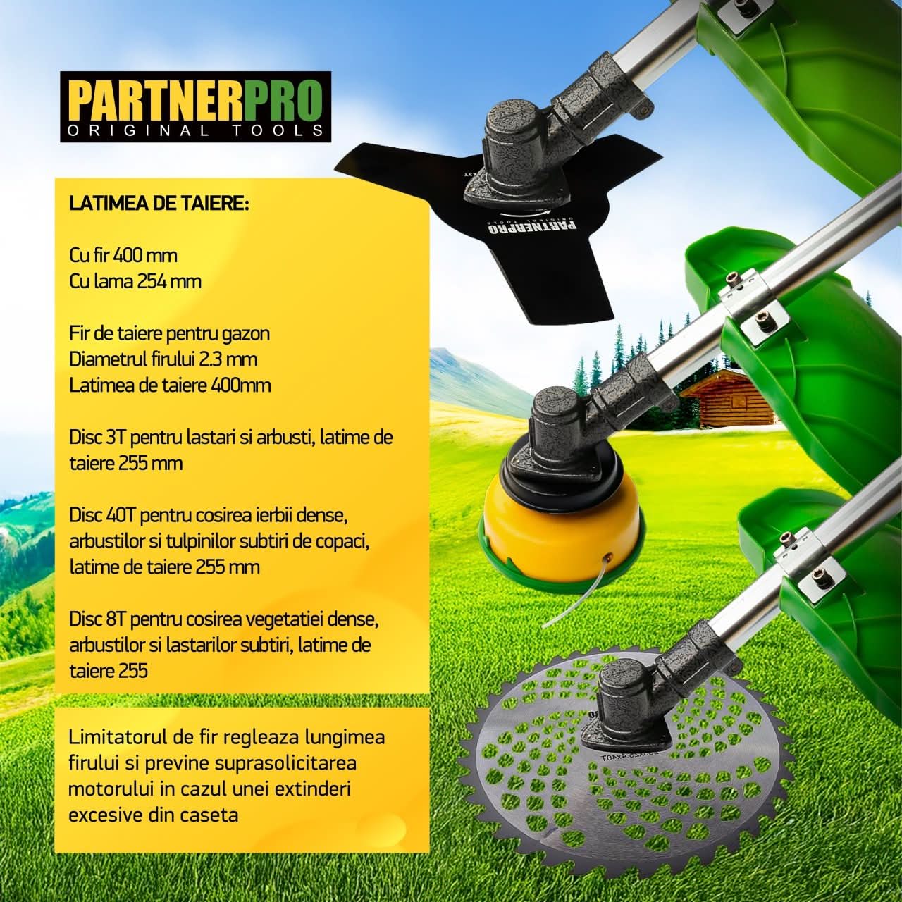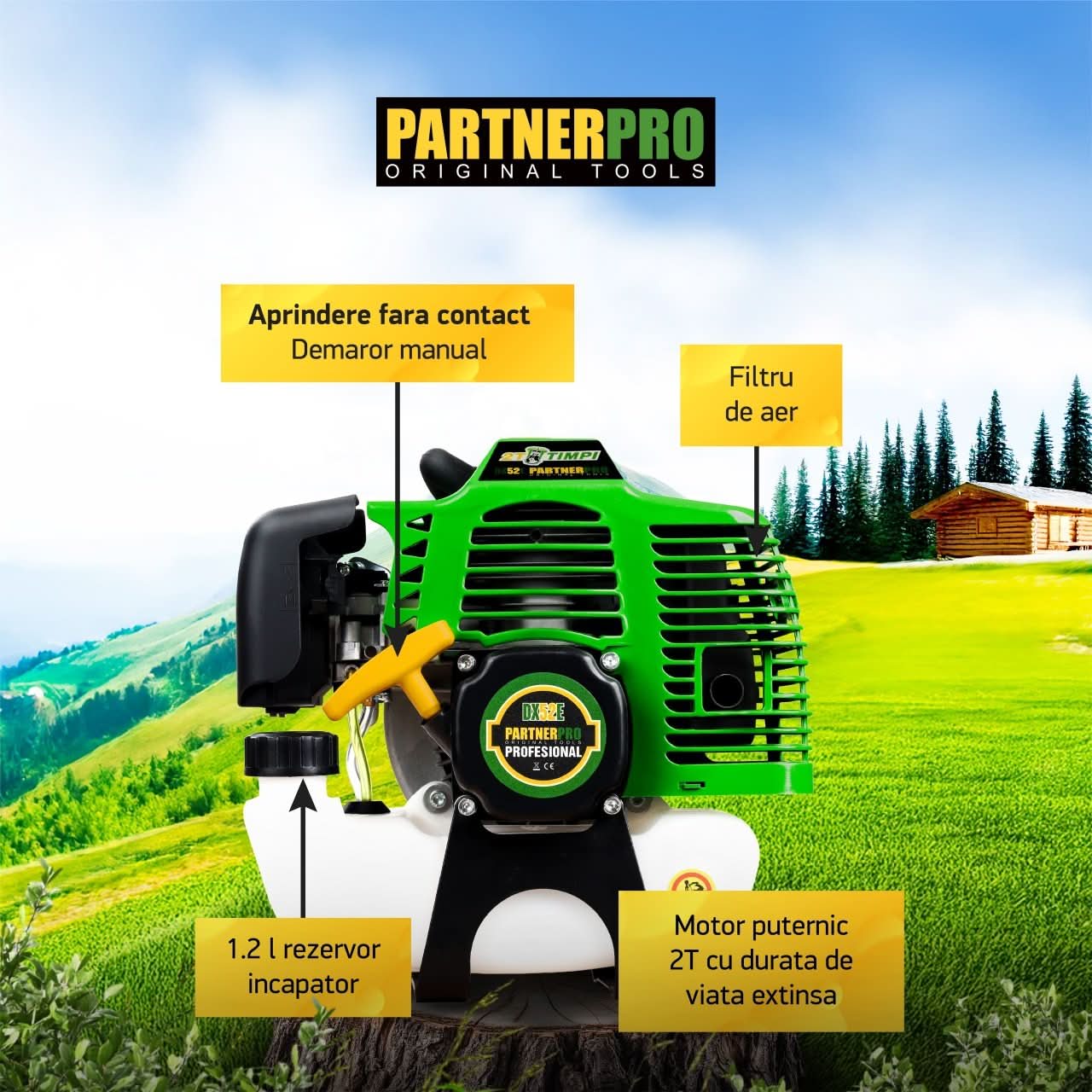 Motocoasa benzina Partner DX52E, 52cc, 5.5CP, 10000 rpm, 3 discuri incluse