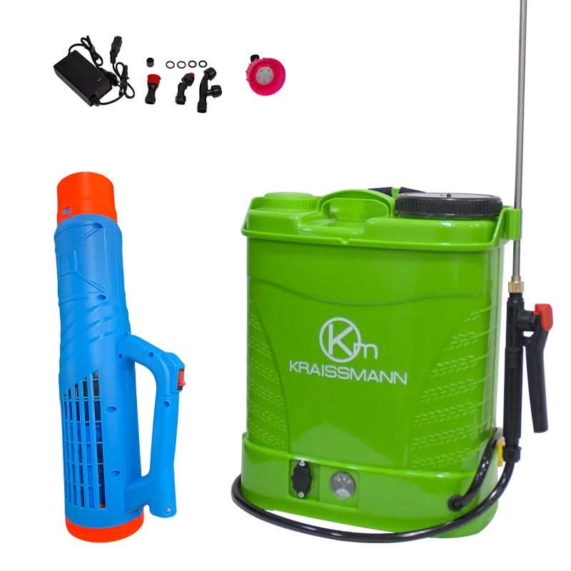 Actionarea motorului este facuta cu ajutorul unei baterii reincarcabile de 12V 8Ah. Pompa de stropit Kraissmann dispune de un manometru de lucru, pentru a putea fi utilizat la presiunea de lucru dorita, precum si pentru protectia garniturilor de presiune.