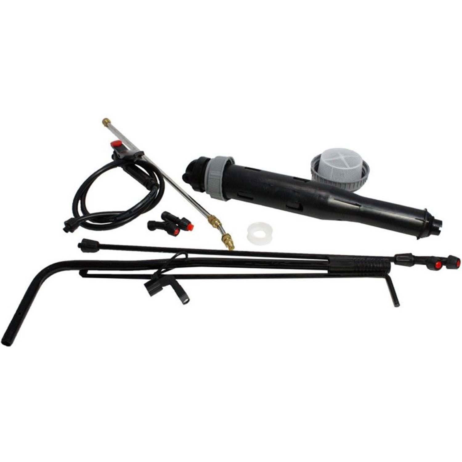 Tija telescopica de stropit cu duza metalica reglabila este practica si permite o raza mare de utilizare.