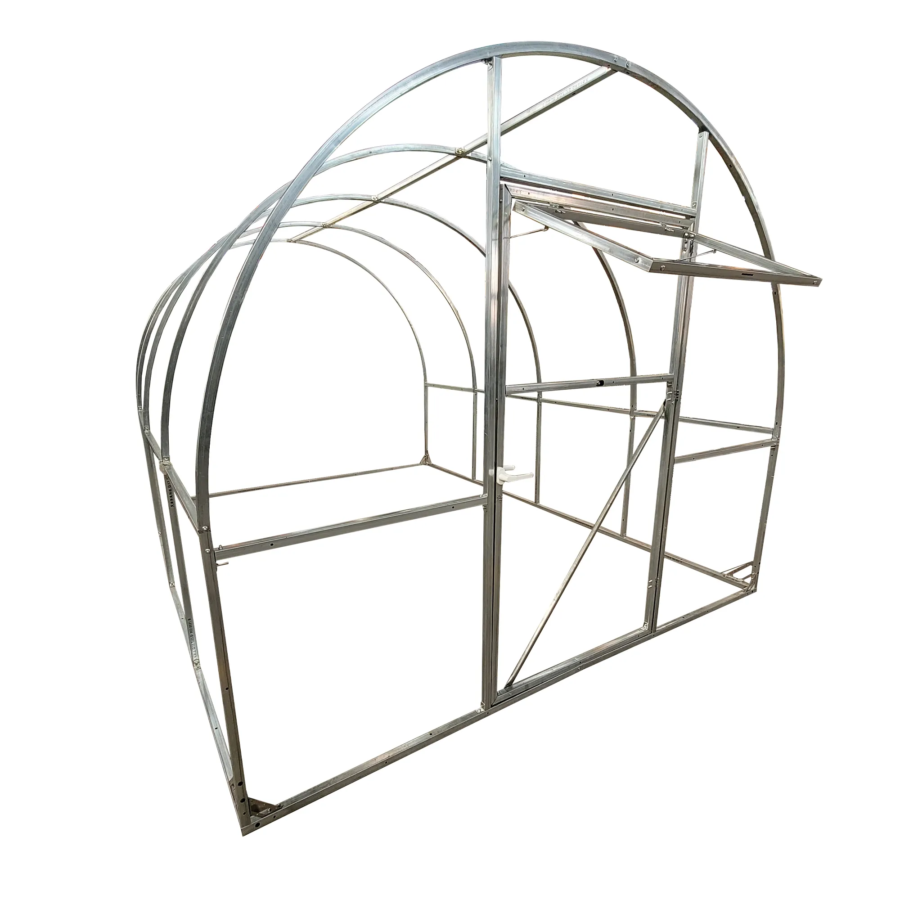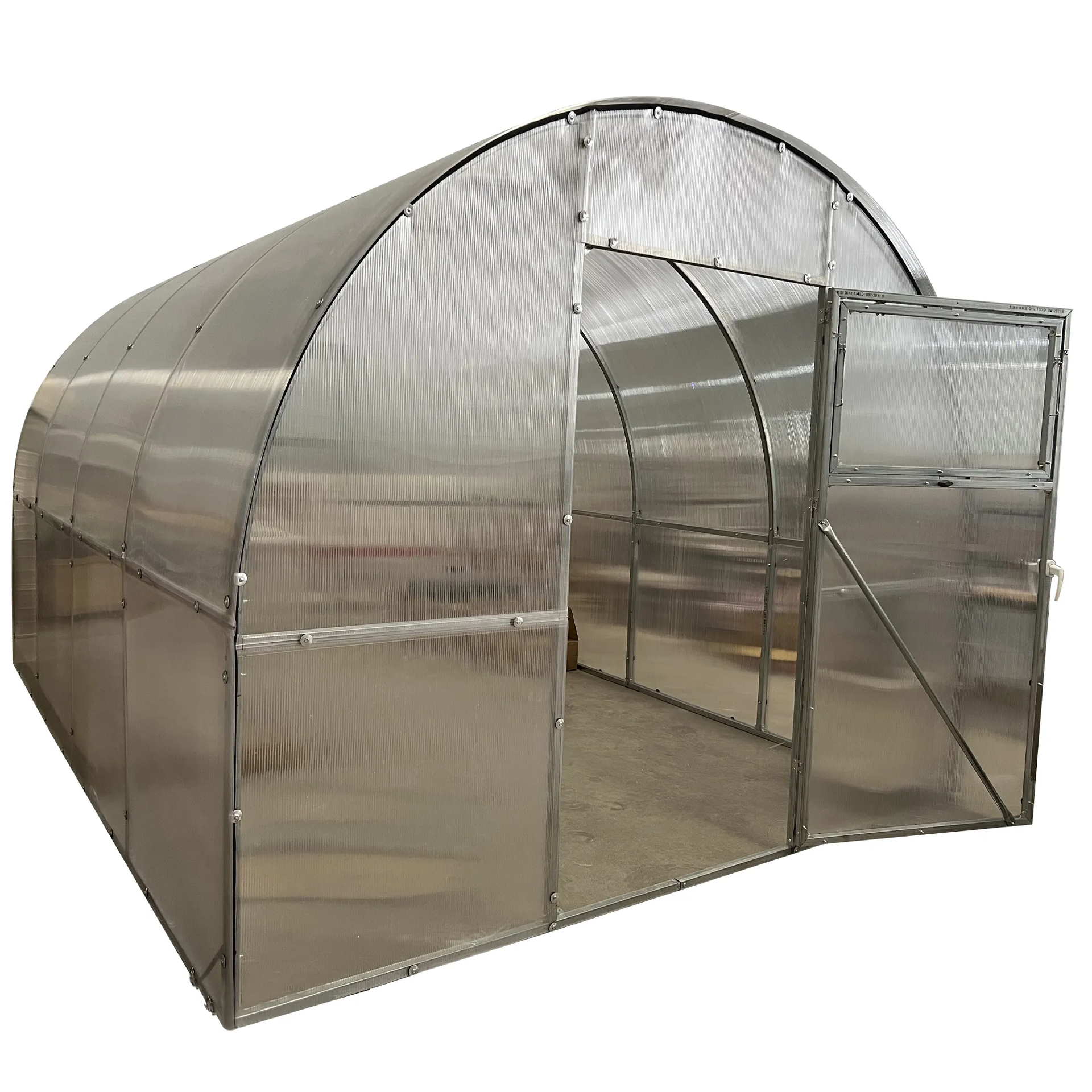 Seră profesională tip tunel cu structură din oțel galvanizat și acoperire din policarbonat rezistent, ideală pentru cultivarea legumelor, florilor și altor plante în condiții optime. Echipată cu sistem de irigare inclus, oferă o soluție completă pentru grădinarii amatori și profesioniști.