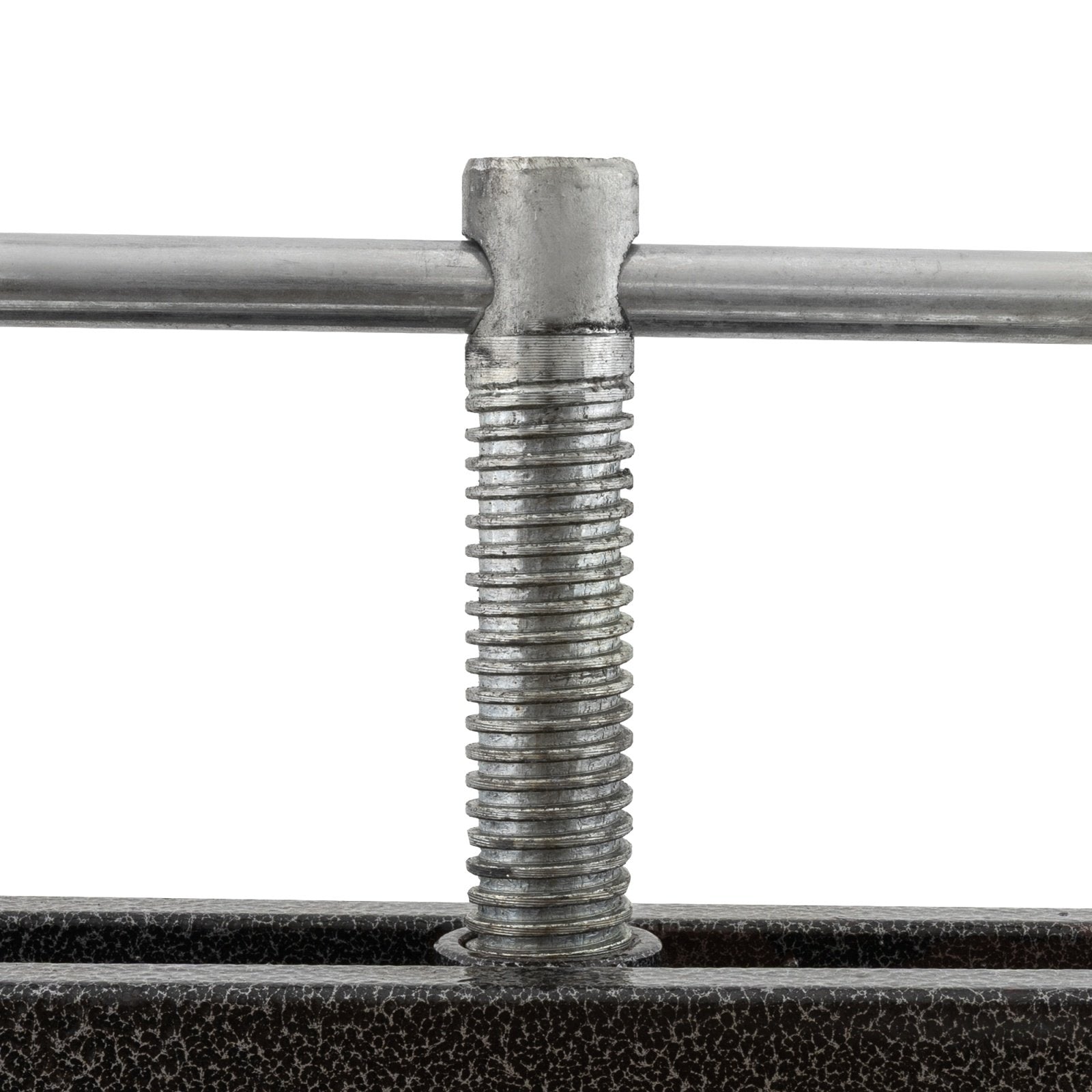 Presarea se face prin rasucirea axului filetat, care actioneaza capacul metalic de presare. Cilindrul perforat permite scurgerea mustului direct in tava de inox cu orificiu, iar distanta de 170 mm fata de sol permite plasarea unui recipient de 10 L pentru colectare imediata.