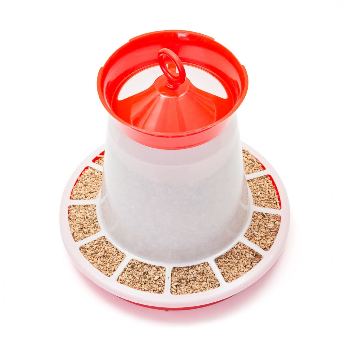 - Hrănitoare din plastic gros și rezistent, ideală pentru hrănirea simultană a aproximativ 25 de pui sau 5-6 găini adulte. Poate fi utilizată atât pe sol, cât și suspendată, datorită inelului solid din partea superioară. Fantele speciale previn scurmarea furajului, reducând pierderile semnificativ. Când este suspendată, scurmarea este aproape imposibilă, astfel pierderile de furaj sunt minime.