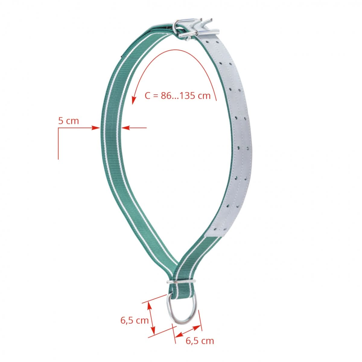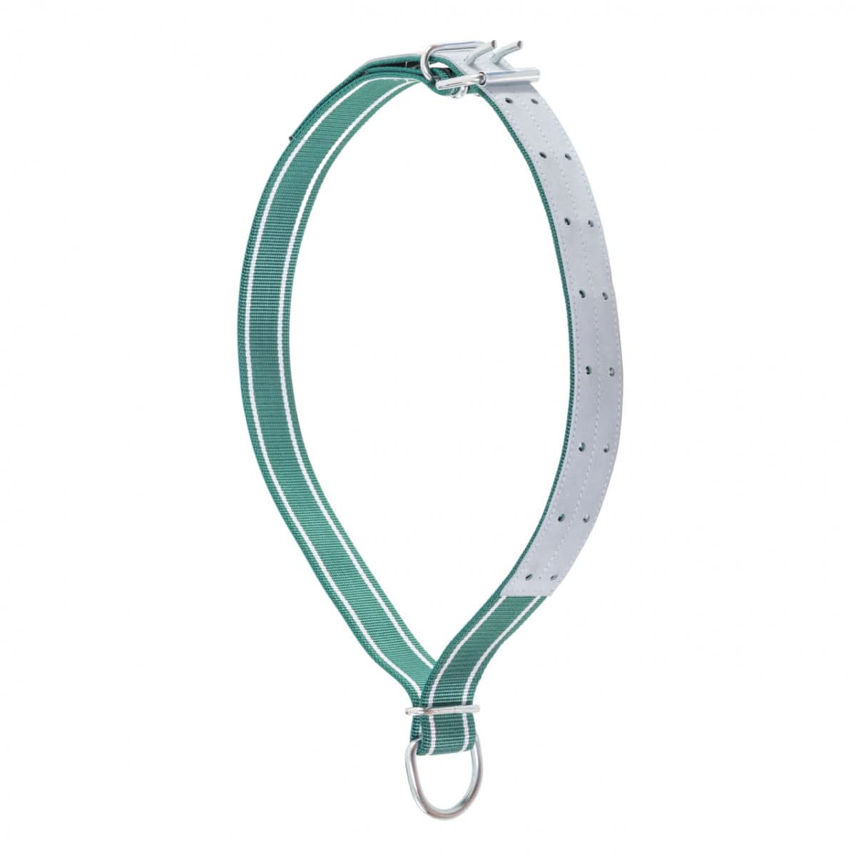 Acest colier este confecționat din material sintetic de înaltă calitate, oferind confort și stabilitate pentru bovine. Este prevăzut cu un dublu rând de găuri și întărit cu piele, ceea ce îi conferă durabilitate. Colierul este ajustabil în 11 poziții, asigurând o potrivire corectă și confortabilă. Inelul de prindere D facilitează fixarea în diverse condiții.