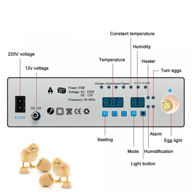 Echipat cu un controller digital integrat, incubatorul permite monitorizarea și reglarea parametrilor, iar baza transparentă oferă vizibilitate asupra ouălor fără a fi necesară deschiderea acestuia.