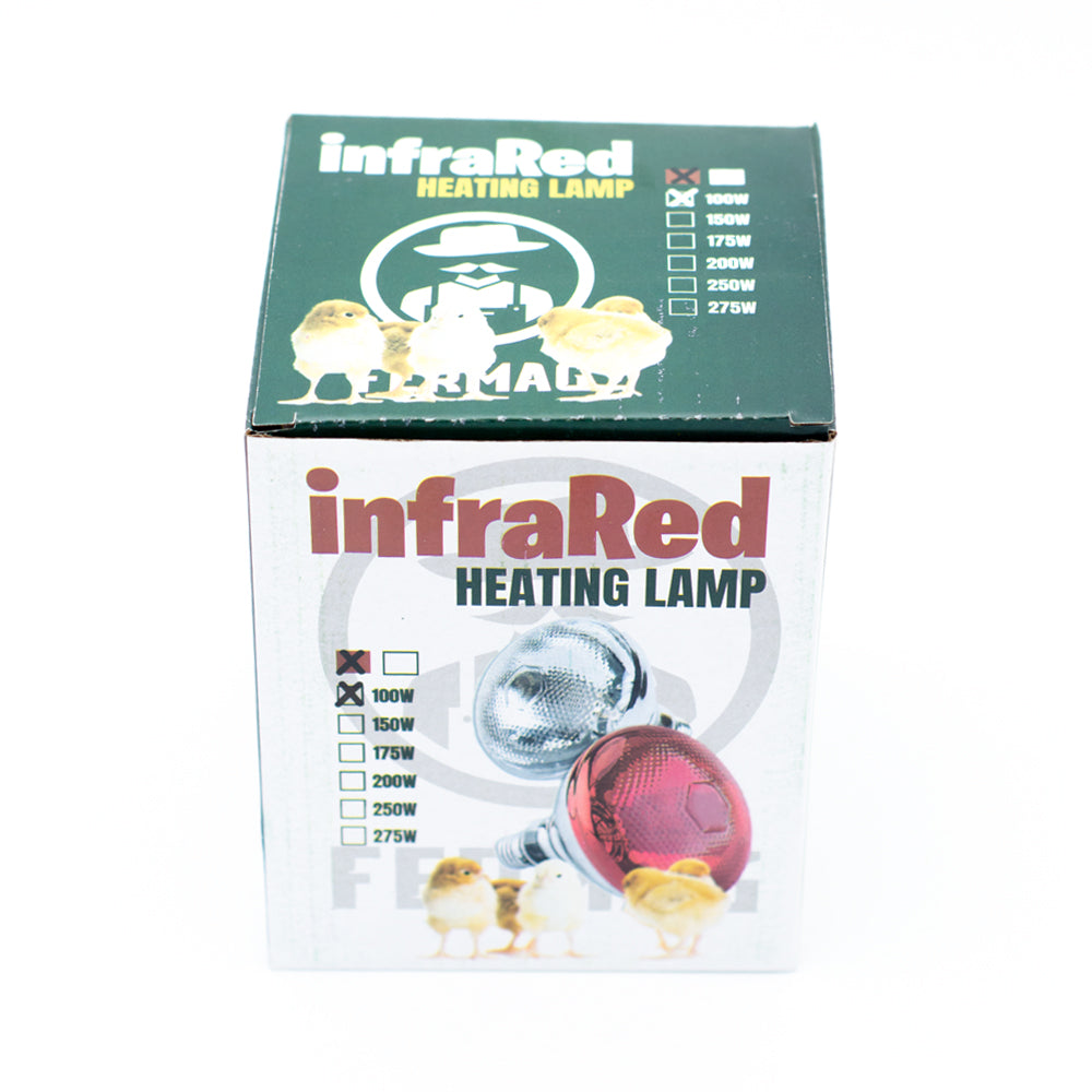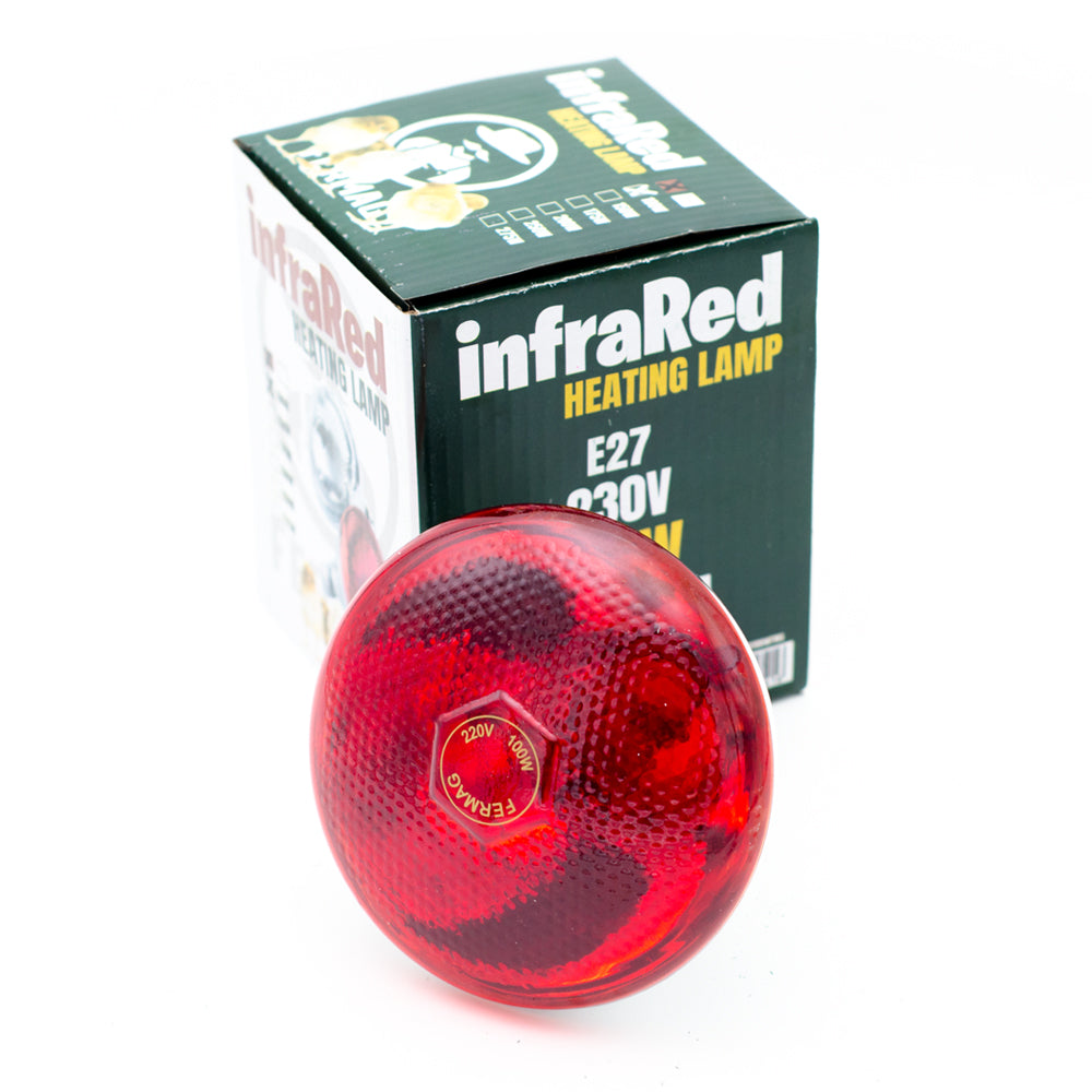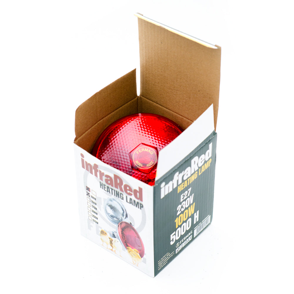 Becul infrarosu Fermag de 100 W este destinat incalzirii adaposturilor pentru animale mici precum pui, purcei, miei sau iezi. Asigura caldura directa, fara curenti de aer, contribuind la cresterea sanatoasa si recuperarea animalelor. Este o sursa de caldura sigura, fara pericol de foc, cu durata lunga de utilizare.