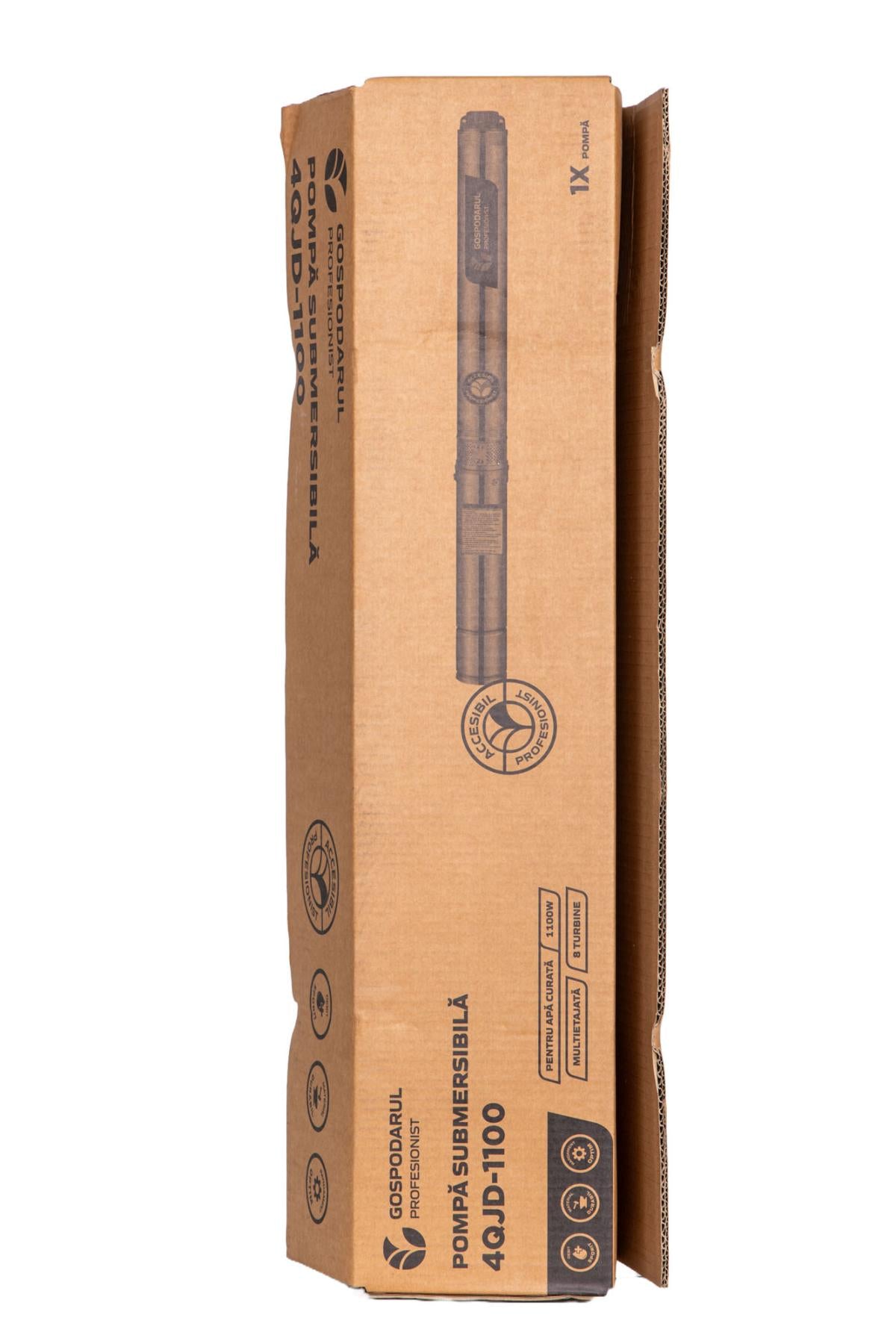 Pompa submersibila PROFESIONALA Gospodarul Profesionist 4QJD-1100 este conceputa pentru alimentarea cu apa curata din puturi adanci, fiind potrivita pentru gospodarii, aplicatii industriale si unitati de tip pensiune sau hotel. Sistemul multietajat cu 8 turbine POM asigura presiune constanta si debit stabil, chiar si la adancimi mari.