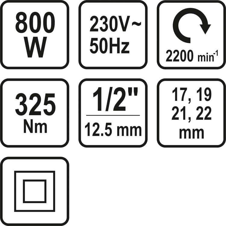 Cheie electrică cu impact de 1/2 ". Putere 800W, 325 Nm.