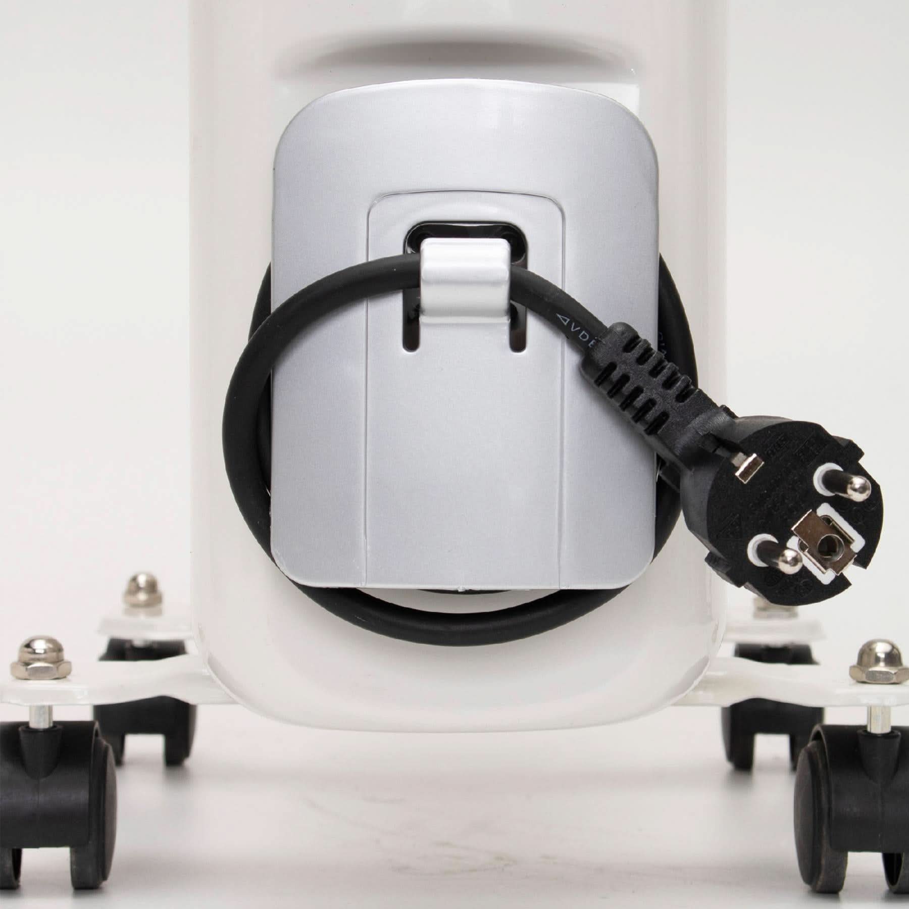 Proiectat pentru siguranta si confort, radiatorul dispune de protectie la supraincalzire si rasturnare, fiind testat individual pentru rezistenta la presiune. Datorita rotilor si manerului adancit, poate fi mutat cu usurinta, iar suportul pentru cablu ajuta la o depozitare ordonata.